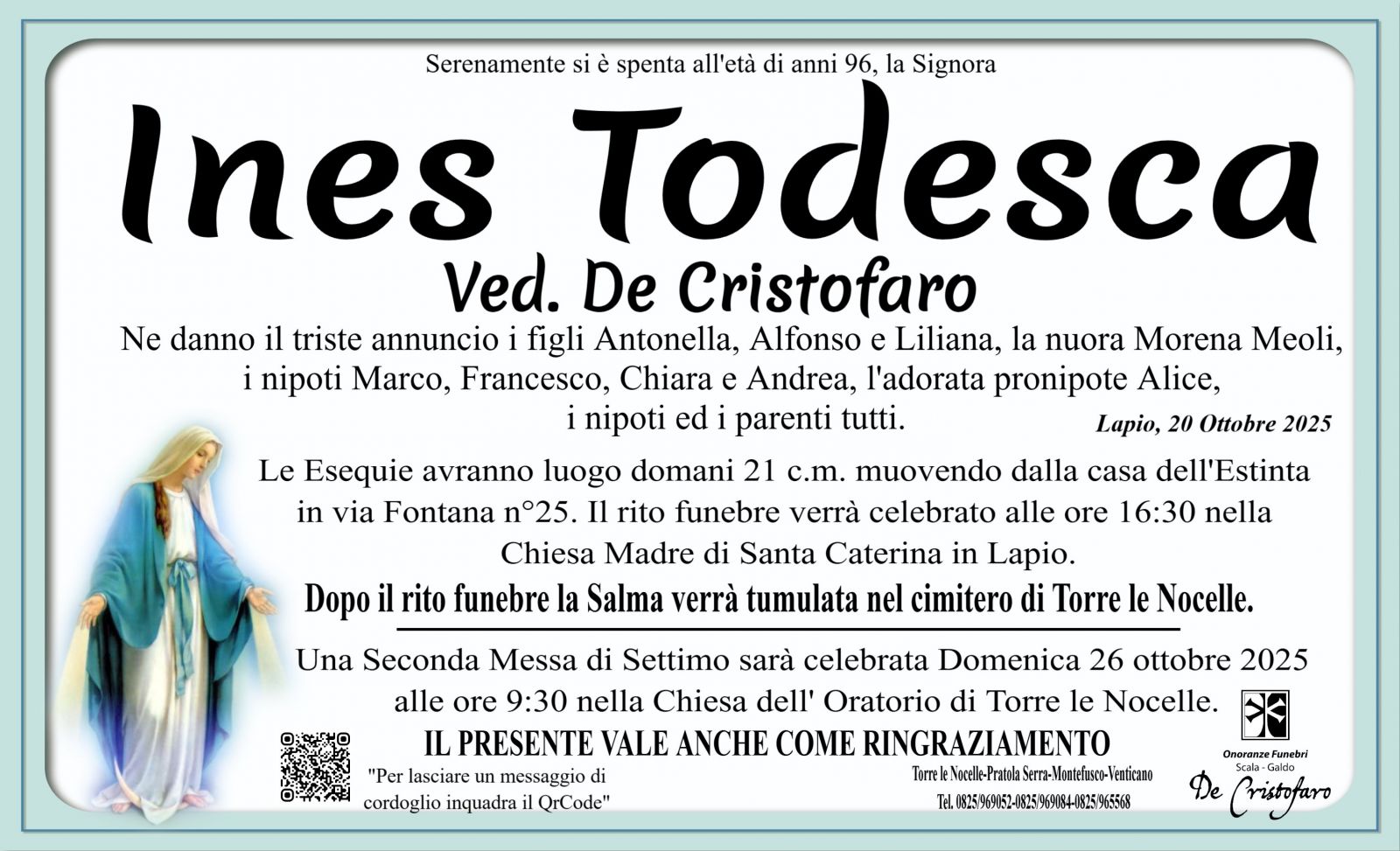Lascia gratuitamente un messaggio di cordoglio, sarà nostra cura consegnarlo ai congiunti di Ines Todesca.